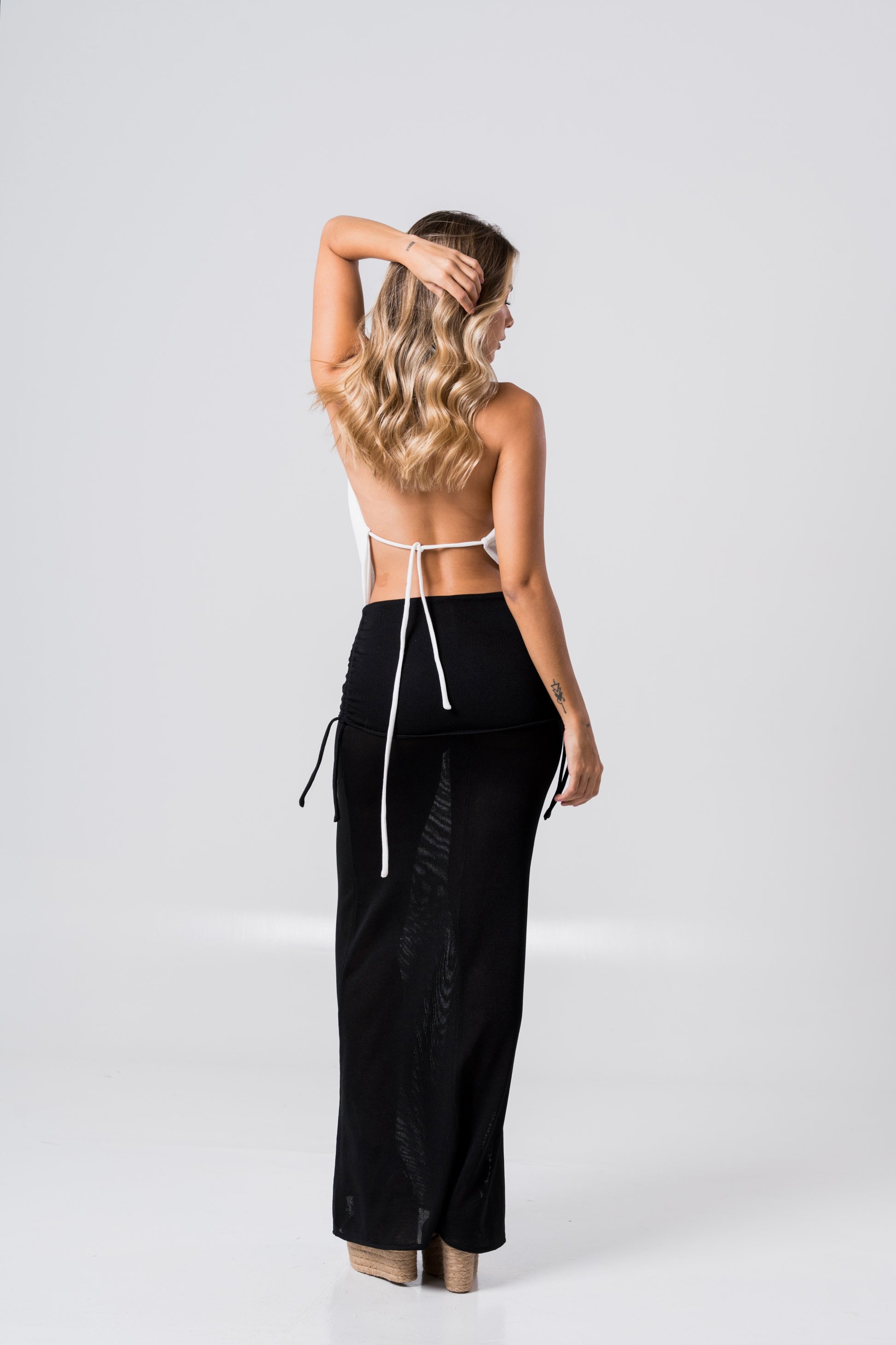 Elaborado en hilo. La modelo usa talla S.