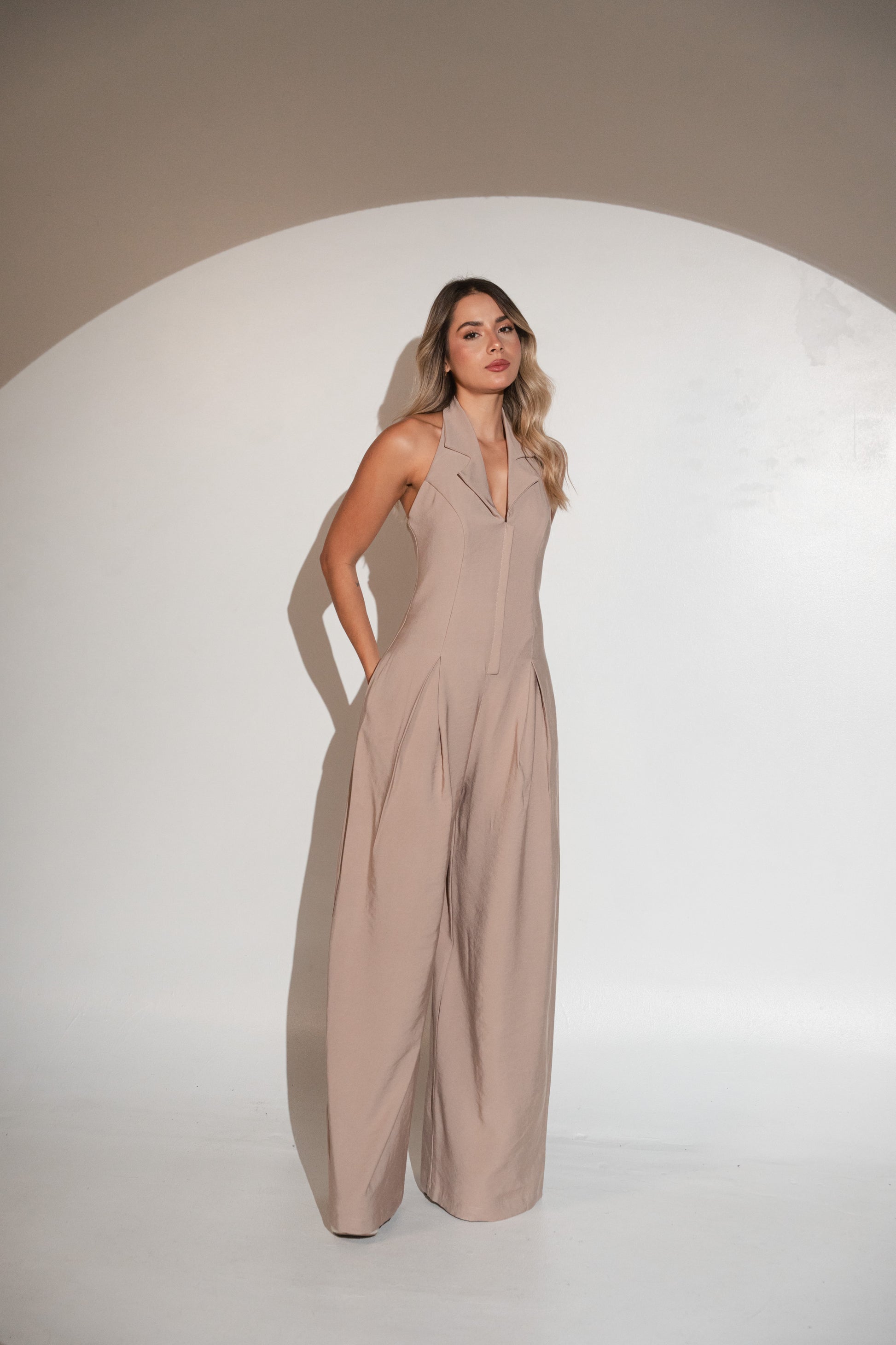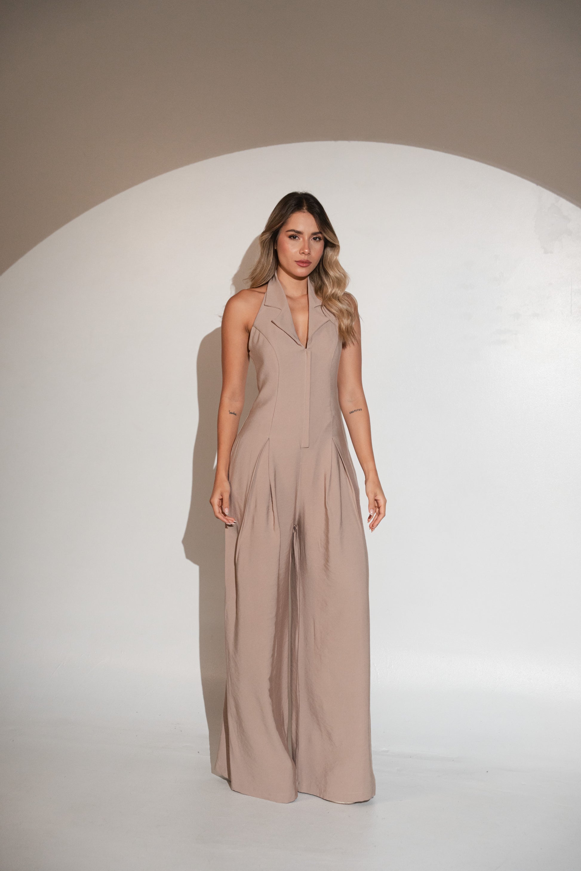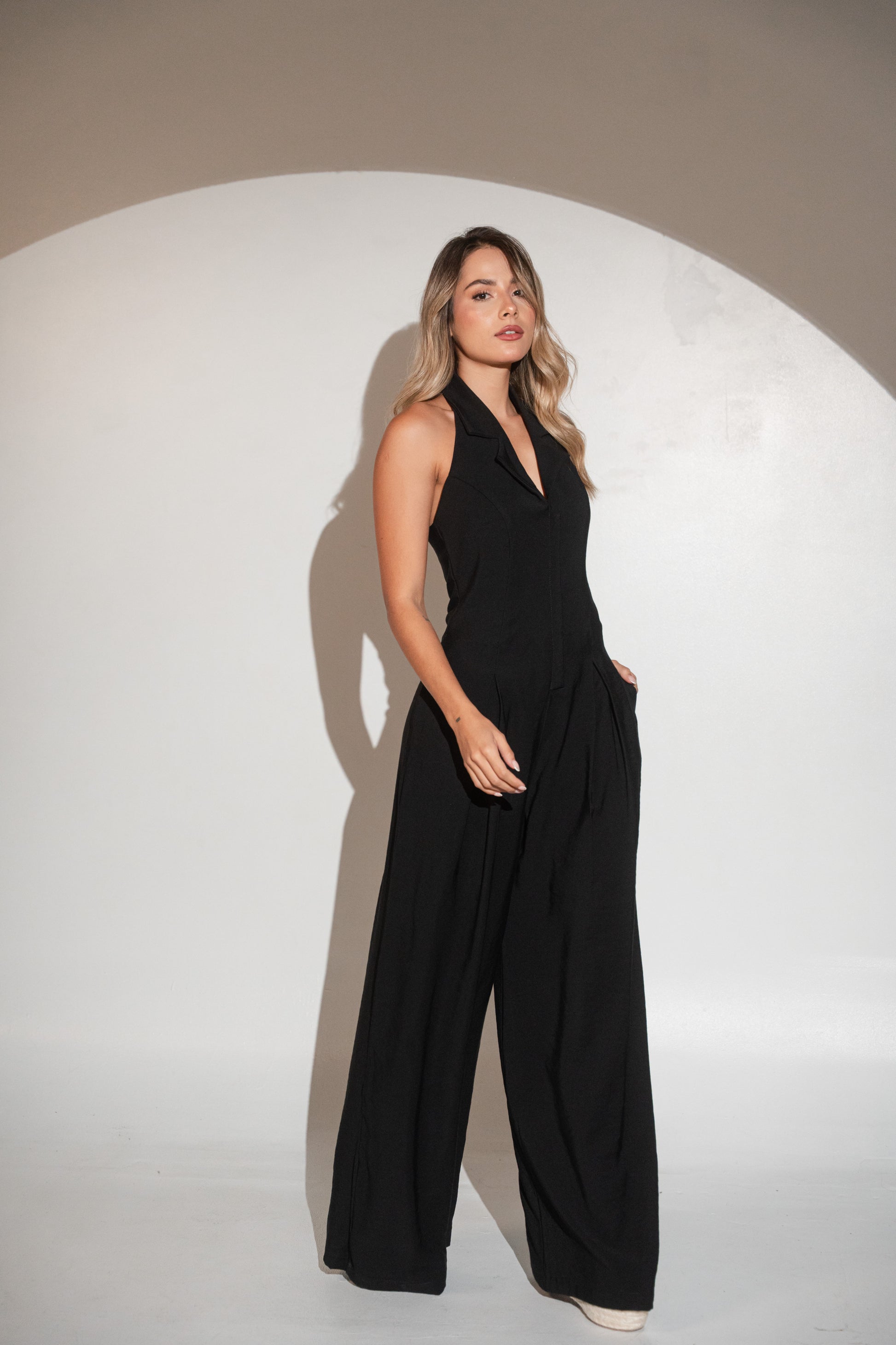 Elaborado en tela rígida. La modelo usa talla S, mide 1.70 M. Usa plataformas de 15 cm.