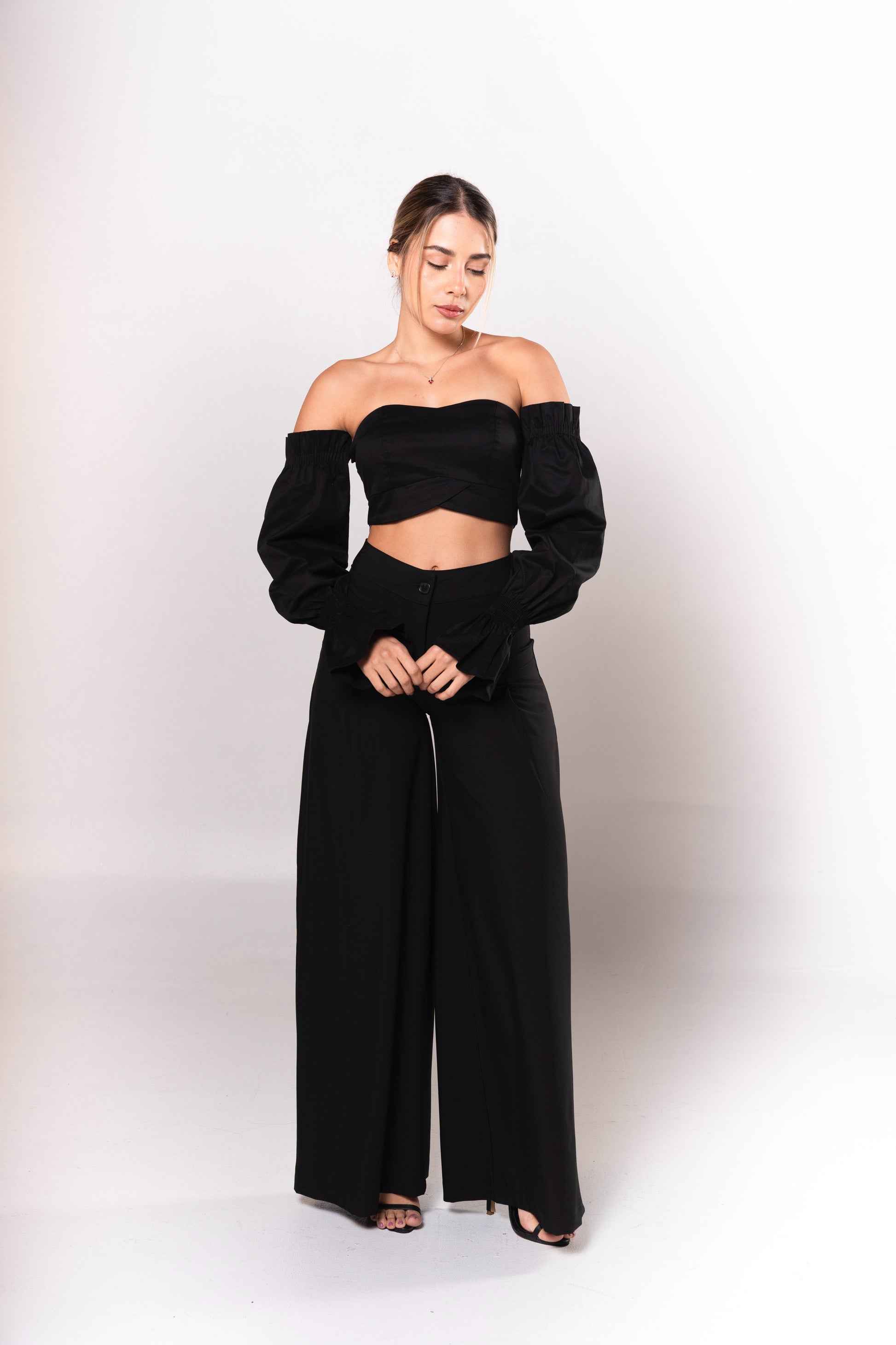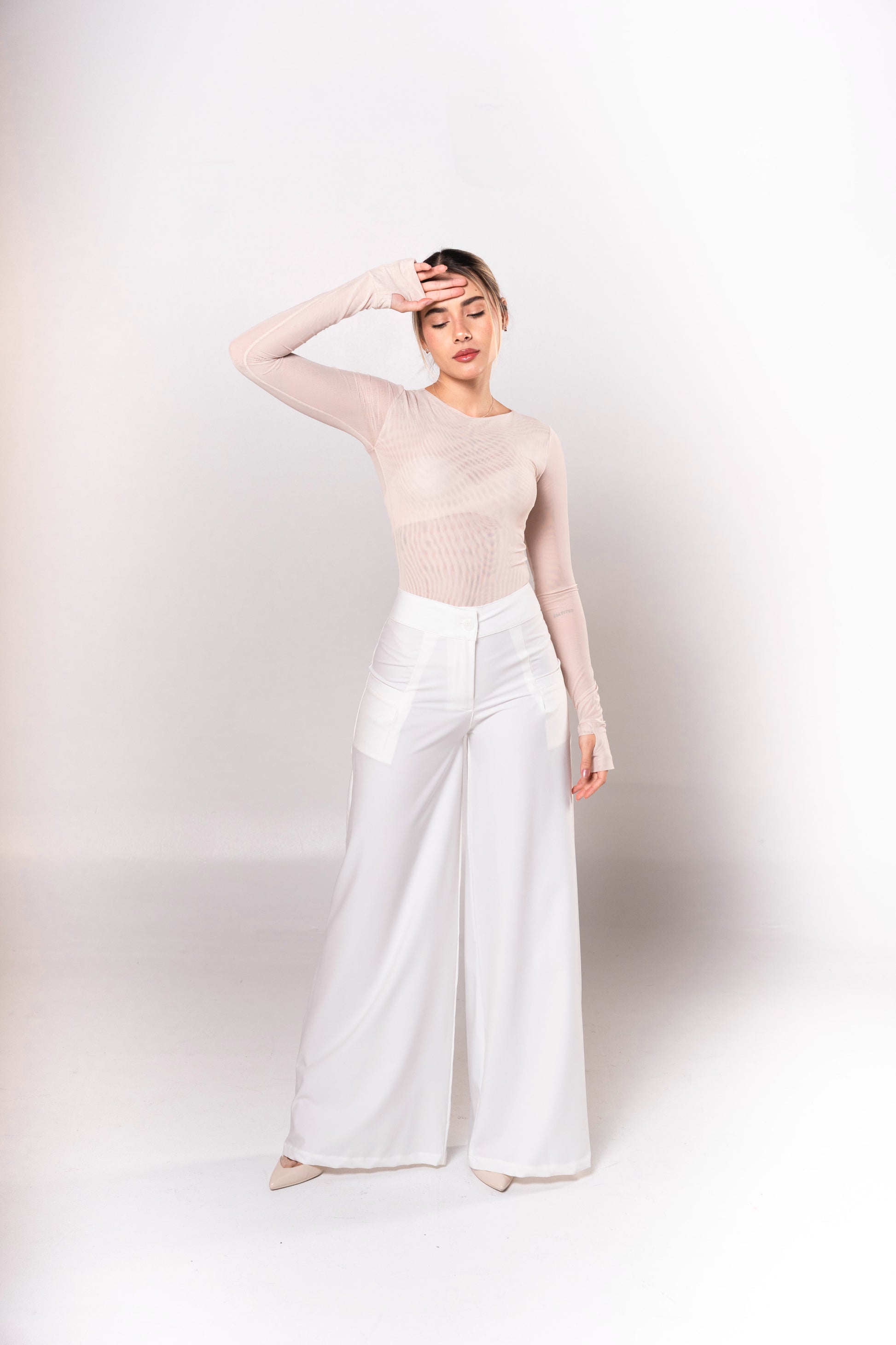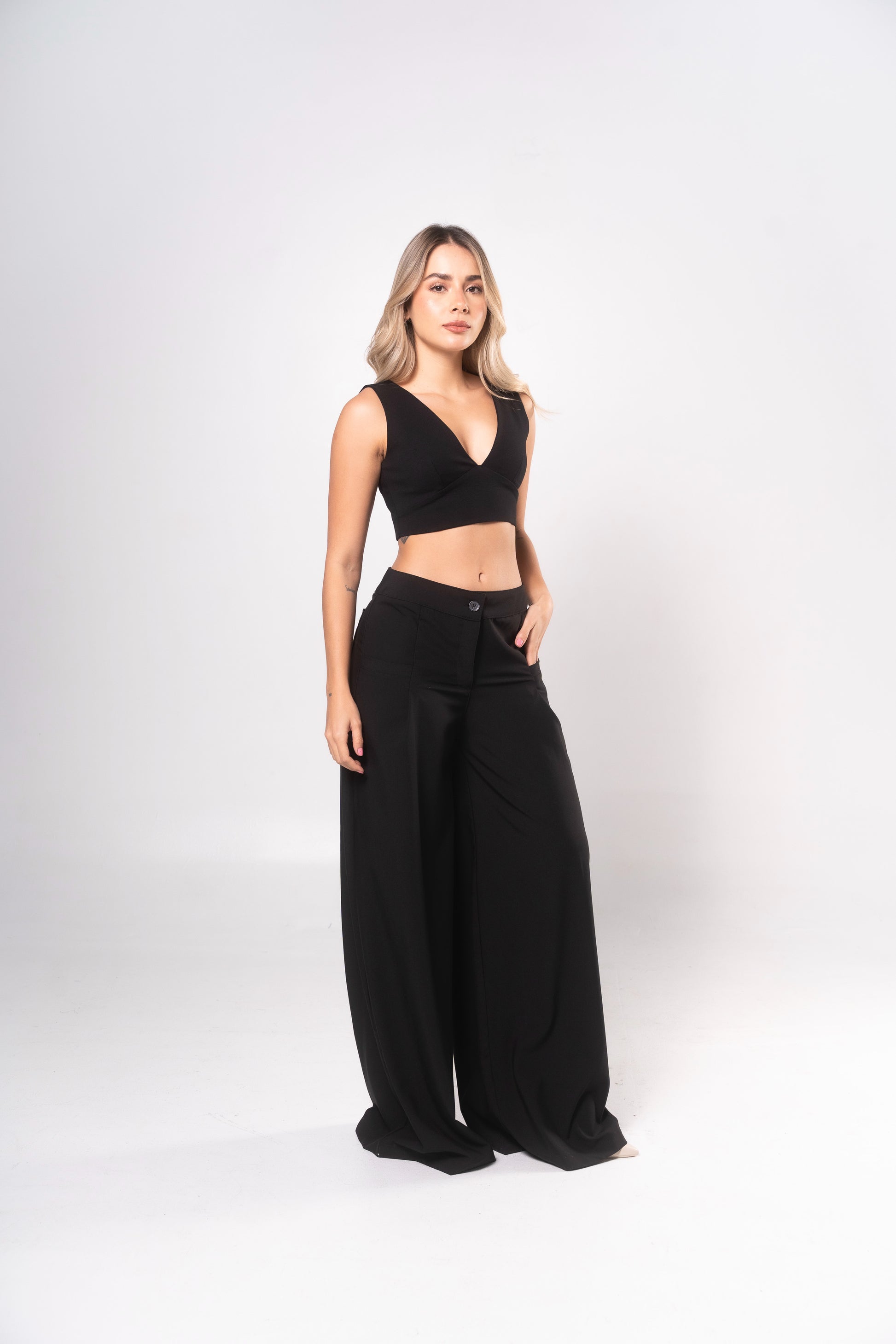 Elaborado es tela rígida, cuenta con caída. La modelo usa talla S-8, mide 1.70 M.