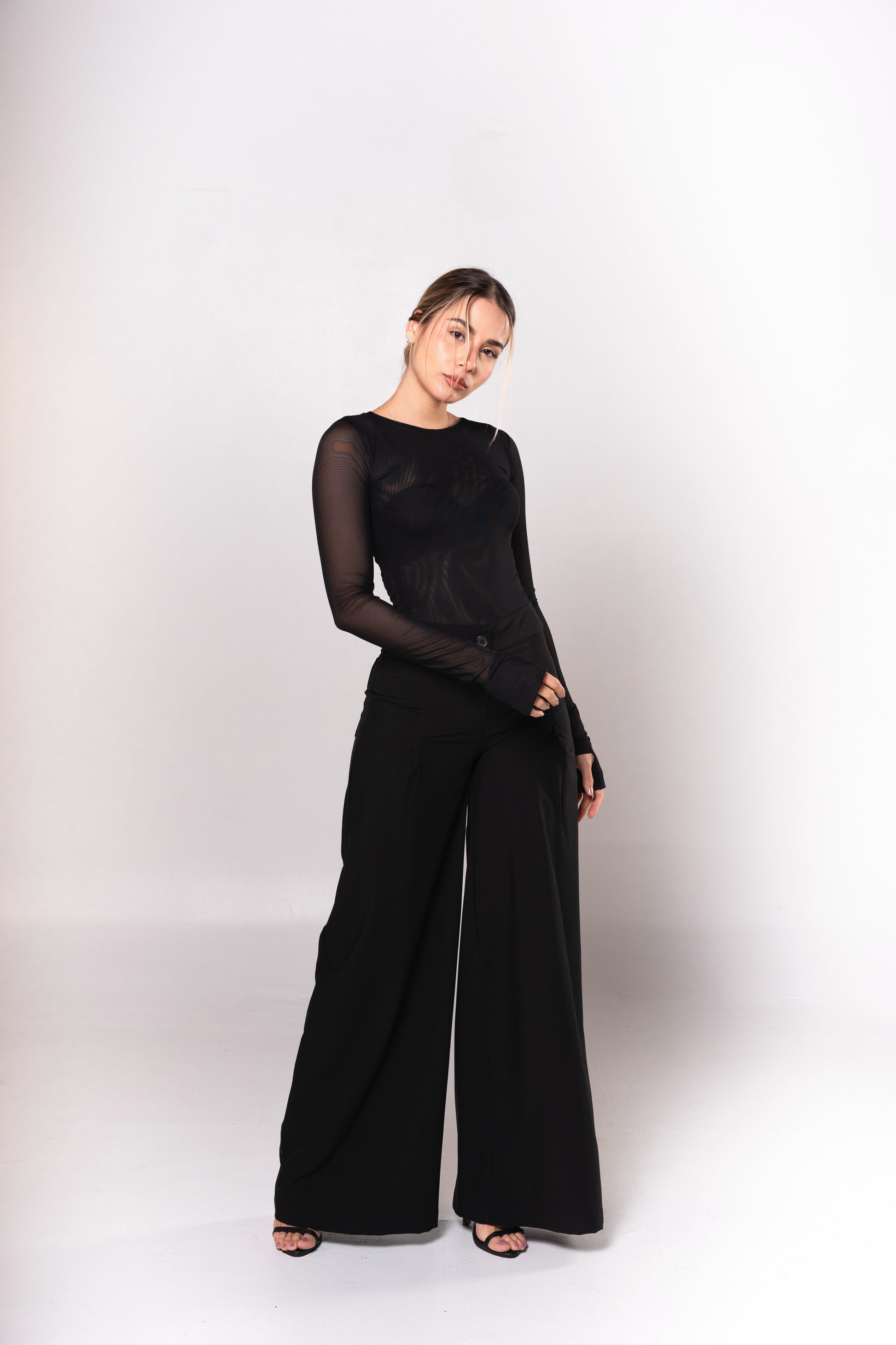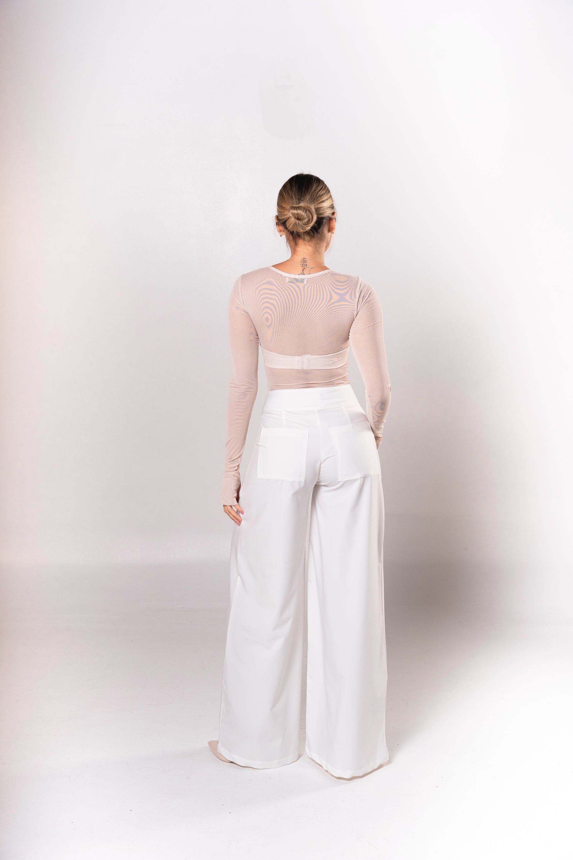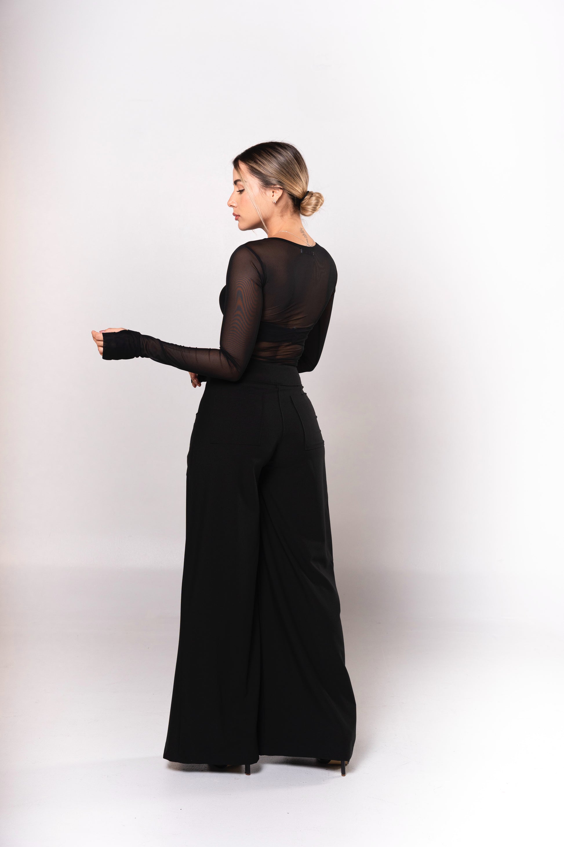 Elaborado es tela rígida, cuenta con caída. La modelo usa talla S-8, mide 1.70 M.